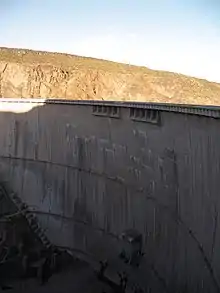 The Agua del Toro Dam is an arch dam on the Diamante River about 63 kilometres (39 mi) west of San Rafael in Mendoza Province, Argentina. The primary purpose of the dam is hydroelectric power generation and it supports a 150 megawatts (200,000 hp) power station located downstream. Construction on the dam began in 1966, and it was completed in 1973. The power station was started the same year and commissioned in 1982. The dam and power station is part of the Rio Diamante System which is owned jointly by Hidroeléctrica Diamante (HIDISA) and Hidroeléctrica de los Nihuiles (HINISA).[1][2][3]