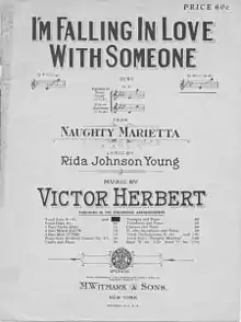 Naughty Marietta had its first performance on October 24, 1910, in Syracuse, New York,[1] and opened on Broadway on November 7, 1910, playing for 136 performances at the New York Theatre. It enjoyed revivals in 1929 at Jolson's 59th Street Theatre and in 1931 at Erlanger's Theatre. The operetta became Victor Herbert's greatest success.