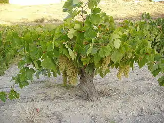 The Airén vine is commonly planted in unusually low vine density, around 1500 vines per hectare, which has a deleterious effect on wine quality as with any grape variety. Its vineyards cover vast areas but as trends in Spanish wine production move towards red wine, a huge number of Airéns vines are being uprooted, not least because the grape often produces an acidic and characterless wine, such as the wines produced from La Mancha's Airén vines.[3] Due to the anonymous nature of Airén wines, its principal use has generally been in the manufacture of Spanish brandy.