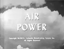 Air Power is a historical educational television series broadcast on CBS from November 11, 1956, until May 5, 1957. In 1958 it was repeated, replacing The Twentieth Century during the summer.[1] It dealt with the rise of aviation as a military weapon. It was produced in cooperation with the United States Air Force.[2] The series also featured a musical score composed by Norman Dello Joio and conducted by Alfredo Antonini.