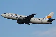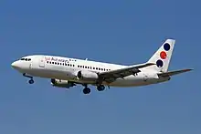 In May 2014, Air Serbia launched their now-defunct[41] charter brand, Aviolet (Serbian Cyrillic: Авиолет),[42] using a fleet of three Boeing 737-300s[43] under Air Serbia's IATA airline code (JU).[41] The majority of Aviolet charter flights were operated during the peak holiday season, which runs from June to September. The first Aviolet-branded flight took off from Belgrade on 4 May 2014, flying to Antalya.[44] As of 2021, Aviolet is defunct as the charter operations were taken over by Air Serbia itself.[41]