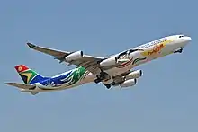 A South African Airways Airbus A340 in the 2012 Summer Olympics Livery