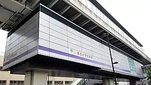 Station numbering was introduced to the Nippori-Toneri Liner platforms in November 2017, with the station receiving station number NT03.[2]