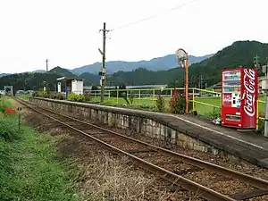 Akaike Station has one ground-level side platform serving a single bi-directional track. The station is unattended.