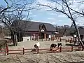 The zoo began as a zoo attached to the Akita Prefectural Children’s Hall within the grounds of former Kubota Castle (39°43′20.1″N 140°07′30″E / 39.722250°N 140.12500°E / 39.722250; 140.12500) in October 1950. It was transferred to the control of Akita City in April 1953 and renamed the Akita City Children’s Zoo,[6][7][8] and "Monkey Train ride" was very popular.[9][10] In September 1972, it was relocated to its present location.