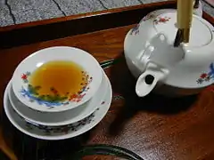 Akumochizake (灰持酒) (also written as (灰汁持ち酒)) is a type of sake in which ash is mixed into the brewing mash.[1] It is drunk as a new years spiced sake.[2]