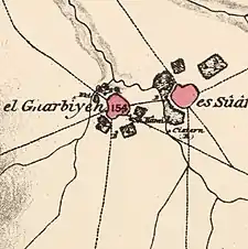 In 1838 the three Sawafir villages were noted located in the Gaza district. The western village was noted as "in ruins or deserted,” while the two others were noted as being Muslim.[13][14]