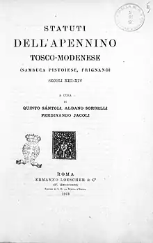 - Statuti dell'Appennino tosco-modenese (in Italian). Roma: E. Loescher e C. 1913.