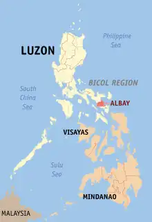 Albay's 2nd congressional district is one of the three congressional districts of the Philippines in the province of Albay. It has been represented in the House of Representatives of the Philippines since 1916 and earlier in the Philippine Assembly from 1907 to 1916.[3] The district consists of Albay's capital city of Legazpi and adjacent municipalities of Camalig, Daraga, Manito and Rapu-Rapu. It is currently represented in the 19th Congress by Joey Salceda of the Lakas–CMD.[4]