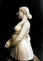| Madame Guillaume Dubufe | Musée d'Orsay | 1895 | A statuette in marble shown at the Salon of the Société nationale des beaux-arts in 1895. Dubufe was a French painter. Bartholomé was also commissioned to execute a white marble bas-relief for the Dubufe tomb in Père-Lachaise. This tomb was also the burial place of Dubufe's daughter, the painter and sculptor Juliette Dubufe.[9][10] | ![]() |