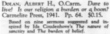 - ↑ "book announcement". Catholic Library World. 13 (2): 62. Nov 1941.