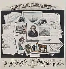 He started an engraving apprenticeship in 1827 under the tutelage of Cephas G. Childs and was taught the art of engraving on copper. Pendleton's Lithography had moved their operations from Boston to Philadelphia and began a business under the name Pendleton, Kearney and Childs.[15] They began to implement lithography into the business and hired P.S. Duval from Europe to implement the technique. Newsam learned the technique of drawing upon stone from Duval and became renowned for his portraiture.[16] Newsam's work was first published by Childs starting in 1829.[10] Newsam is credited with raising the prominence of lithography in the United States.[3] Childs left the business in 1835 and Newsam continued to work for the successor organization, Lehman & Duval which became P.S. Duval in 1837.[13]