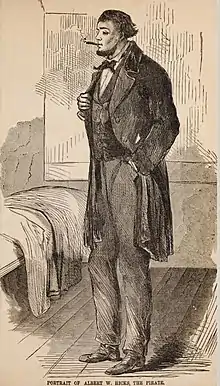 Albert W. Hicks (c. 1820 – July 13, 1860), also known as Elias W. Hicks, William Johnson, John Hicks, and Pirate Hicks, was a triple murderer and one of the last people executed for piracy in the United States.[1] Cultural historian Rich Cohen places him as the first New York City legendary gangster figure, a bridge between the piracy of old and the rise of a new "gangster nation".[2]