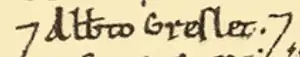 Albert's surname likely originates from the Old French term greslet, meaning pock-marked or pitted. This was likely to be an attribute of either Albert himself, or one of the families earlier members.[8][9] In the Domesday book, he is also known as Albert crematus (Albert the Burnt).[10][11] It is difficult to tell whether this was either a previous family name, or merely a nickname.[12]