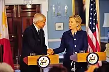 - ↑ "Secretary of Foreign Affairs of the Philippines to Visit Mount Saint Vincent". College of Mount Saint Vincent. September 23, 2015. Archived from the original on February 15, 2016. Retrieved February 8, 2016.