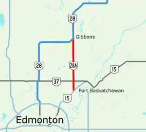 Alberta Provincial Highway No. 28A, commonly referred to as Highway 28A, is an 18-kilometre (11 mi) highway in Alberta, Canada that connects Highway 15 in northeast Edmonton to Highway 28 near Gibbons. It is numbered 17 Street NE within Edmonton and forms an alternate route to Highway 28 into the city from the north. As the southernmost component of the Edmonton–Fort McMurray corridor, the highway is designated as a core route of Canada's National Highway System for its entire length.