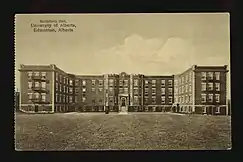 In July 1916 the Board of the College confirmed the decision to move to Edmonton.[23] An advertisement in the August 16, 1916 edition of the Grain Growers Guide stated that the College was “now located in Assiniboia Hall, University Building, Edmonton, Alberta”.[24] An article in a September 1916 issue of the Edmonton Bulletin noted that the college moved “lock, stock and barrel” from Red Deer to Edmonton in one week, and was looking forward to its new location and close relationship with the University of Alberta.[25] On October 31, the College staff and students held a reception in their new home for the University and Edmonton community to get a "glimpse into the daily life of Red Deer Ladies' College".[26]