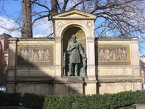 - Fuhrmeister, H (May 1980). "Hallesche Duplikate der Majolikareliefs vom Berliner Albrecht-von-Graefe-Denkmal" [Copies of the majolica bas-reliefs form the Albrecht von Graefe Monument in Berlin, installed in the Halle polyklinik (author's transl)]. Klinische Monatsblätter für Augenheilkunde (in German). 176 (5): 867–869. doi:10.1055/s-2008-1057574. PMID 7003219. S2CID 77319432.