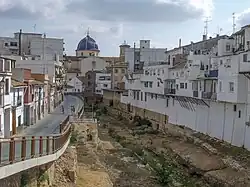 The basin flows into the Albufera through various ravines or wadis.[10] The most important ones are: Rambla del Poyo (also known as Torrente ravine, Massanassa ravine or Chiva ravine), whose basin is 367.6 km2 (40% of the total basin); Barranco de Picasent (also known as Beniparrell ravine); Barranc dels Algadins has a basin area of 23 km2, and most of its basin is located in the municipality of Alginet, although it also runs through the municipality of Algemesí. This ravine loses the definition of its course in Algemesí, becoming an acequia, which drains into the Albufera.