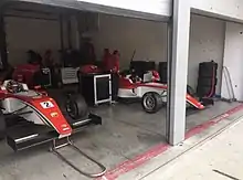 Giardelli in the box on the right during the tests formula 4 with the team Prema Powerteam.