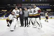 Lyon with fellow Chicago Wolves goaltenders