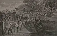 Going on board the boats at Cawnpore, 27 June 1857