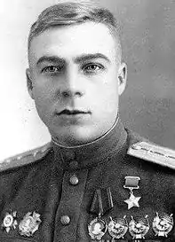 - 1 2 3 Bykov, Mikhail (2014). Все асы Сталина. 1936–1953 [Aces of Stalin. 1936–1953]. Moscow: Yauza. pp. 473–474. ISBN 978-5-9955-0712-3. OCLC 879321002.