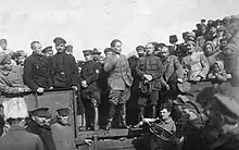 Krasnoshchyokov described his return to Russia in his memoirs: "I arrived in Vladivostok at the end of July 1917, and immediately joined the Bolshevik faction, was elected to the Soviet in August, and in September was elected to the town duma in Nikolsko-Ussuriysk and President of the Soviet of workers' and soldiers' deputies to represent the Bolsheviks."[4]