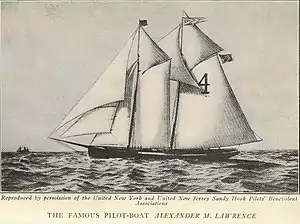 In 1895, the pilot-boat Alexander M. Lawrence, Number 4 was on duty as a station boat when the first steam pilot-boat New York went into service near the Lightship Ambrose off Sandy Hook.[9]