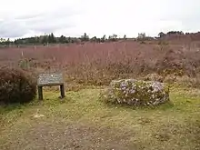The following morning Keppoch's men, on the Jacobite left wing, had to advance into intense government musket fire, chain and canister. A well-known tradition first recorded by Walter Scott claims that when Keppoch saw his men reluctant to advance, he reproached them by shouting Mo Dhia, an do thrèig clann mo chinnidh mi? ("My God, have the children of my clan forsaken me?") before charging alone with pistol and sword drawn.[18] More contemporary accounts, however, suggest that Keppoch led the attack surrounded by a small group of close kinsmen with the rest of his men following in support.[19] During the advance Keppoch had his right arm shattered by a musket-ball: he was subsequently hit in the chest and died some time later while being carried off the field by his illegitimate son Aonghas Bàn.[18] While his regiment appear to have partly rallied in an attempt to defend against government cavalry, they suffered heavy casualties and dispersed after the Jacobite defeat.[20]