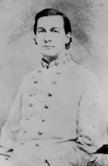 Sent on a mission for Tennessee Governor Isham G. Harris to supervise elections and to recruit new soldiers in the western part of Tennessee, Campbell was taken prisoner by Union forces at Lexington, Tennessee, in July 1863.[4] He was not exchanged until February 1865.[4][7] On February 18, 1865, Campbell was appointed acting inspector general for Lieutenant General Nathan Bedford Forrest.[4] Later in the month, according to Sifakis, or on March 1, 1865, according to Eicher, Campbell was given command of a brigade in Brigadier General William H. Jackson's division of Lieutenant General Forrest's cavalry corps, with which he served until the end of the war.[2][3][4] On March 1, 1865, Campbell was commissioned as a brigadier general in the Confederate Army.[1][4][5] He was paroled at Gainesville, Alabama, on May 11, 1865.[3]