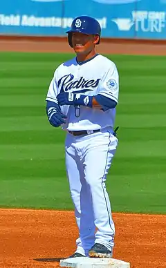 - ↑ Lin, Dennis (April 3, 2016). "Padres set opening-day roster". The San Diego Union-Tribune. Retrieved May 9, 2016.