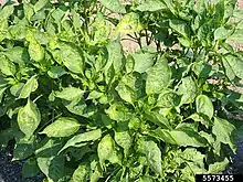 Alfalfa mosaic virus (AMV), also known as Lucerne mosaic virus or Potato calico virus, is a worldwide distributed phytopathogen that can lead to necrosis and yellow mosaics on a large variety of plant species, including commercially important crops. It is the only Alfamovirus of the family Bromoviridae. In 1931 Weimer J.L. was the first to report AMV in alfalfa (Medicago sativa). Transmission of the virus occurs mainly by some aphids (plant lice), by seeds or by pollen to the seed.[1][2]