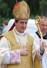 Alfonso de Galarreta Genua, FSSPX (born 14 January 1957), is a Spanish-born Argentine bishop of the Society of Saint Pius X. Bishop de Galarreta has served as the First Assistant of the Society of Saint Pius X, working under the direction of the Superior General Fr. Davide Pagliarani, since 2018.[1] In addition to this, Bishop de Galaretta has been the President of the SSPX—Vatican Commission since 2009, which directs the Society's correspondence with the Holy See.[2]