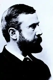 Following Skougaard's death, Clark became Barnard's patron, commissioning works and providing financial support to him in Paris.[10] Clark paid Barnard $25,000 to carve a marble version of his Struggle of the Two Natures in Man (1888), which was completed in April 1894.[17] Barnard exhibited the piece at the 1894 Paris Salon, where the jury, headed by Auguste Rodin, pronounced it a work "of superlative merit".[17] Clark brought the larger-than-life-sized sculpture to New York City. Soon after his death, Clark's widow donated it to the Metropolitan Museum of Art.[17]