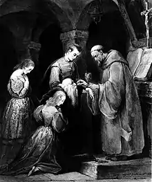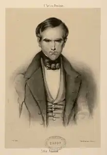 Alfred Johannot (March 21, 1800 โ€“ 1837) was a French painter and engraver born in Offenbach, Germany.[1] His family were French refugees who went to Germany after the Edict of Nantes was revoked. He started out as an engraver, and then came into being a professional painter in 1831. His work was collected by Louis Philippe I and was displayed at the Palace of Versailles. He often painted contemporary court and ceremonial themes, before moving into historical French subjects. Johannot designed the covers for the first illustrated French editions for numerous British writers such as Lord Byron. He died on 7 December 1837.[2]
