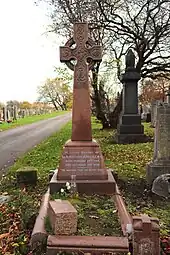 A fortnight before his death, Jones contracted a chill while travelling home from London. He attended a farewell dinner to Sir Hesketh Bell on 7 December 1909, despite poor health, and was confined to his house thereafter.[18] Jones died on 13 December 1909 in Liverpool. He was buried in Anfield Cemetery, where the epitaph reads "He worked that he might give."[19]