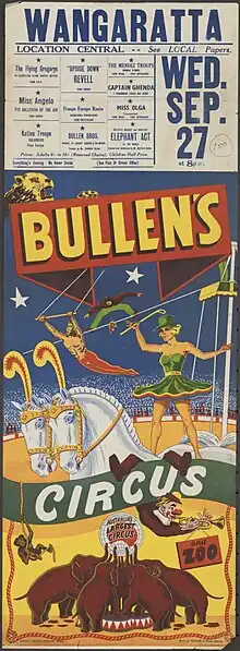 - ↑ "Bullen's Circus [picture] : Australia's largest circus and zoo - Catalogue | National Library of Australia". catalogue.nla.gov.au. Retrieved 4 December 2023.