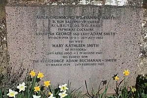 He is buried with his wife, Mary Kathleen Smith of Pittodrie, and eldest son, Rev George Adam Buchanan-Smith (1929–1983) in the north-east corner of Currie Cemetery, next to their second son, Alick Laidlaw Buchanan-Smith.