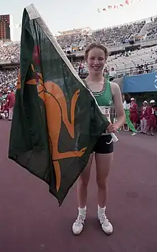 ![]() Australian track and field athlete Alison Quinn holding the boxing kangaroo flag at the Barcelona 1992 Paralympic Games. | |||||||||||||||||||||||||||||||||||||||||||||