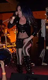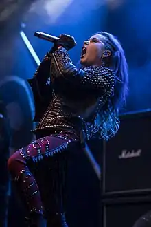 Alissa White-Gluz (/əˈliːsə ˈɡlʌz/;[2] born 31 July 1985) is a Canadian singer, best known as the lead vocalist of the Swedish melodic death metal band Arch Enemy,[3] and former lead vocalist and founding member of the Canadian metalcore band the Agonist.[4] Her vocal style includes both growling and clean vocals (singing).[5] Although primarily associated with melodic death metal and metalcore, she has appeared as a guest vocalist for power metal, symphonic metal and deathcore bands, notably Kamelot, Delain, Carnifex and Powerwolf, and has performed live with Nightwish and Tarja Turunen.