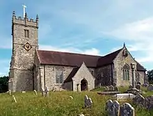 The church is medieval.[2] It is noted for its medieval wall painting of a Lily crucifix one of only two in Europe. The Lily painting was whitewashed out to save it from destruction during the Reformation. It remained hidden until the 19th century, when it was rediscovered.