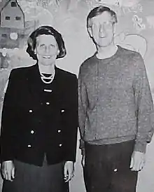 Mrs. Laurie Boone (Head of School) and Father Paul Danielson (School Chaplain), in 1989