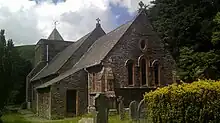 The community's original church, constructed in the 13th century, was located close to the shore of Ullswater on the site of what is now Old Church House.[2] This church was burnt down by Scottish raiders in the 15th century, and a new building was built on the current site and consecrated by Owen Oglethorpe in 1558.[3] In 1880, this church was described as "whitewashed within and without, and walls green with damp. There was a gallery, but no organ, chancel or glass".[4]