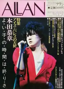 The first issue of Allan was published in October 1980 as a special issue of Gekkan Out.[7] The issue was priced at ¥490 (US$4.46), and featured an illustration by Yasuko Aoike and a gravure (pin-up photograph) of David Bowie as a bound-in poster.[8] Starting from the June 1983 issue, it was launched as a bimonthly (every two months) publication independent from Gekkan Out.[9][10] Allan ceased publication with its February 1984 issue.[9]