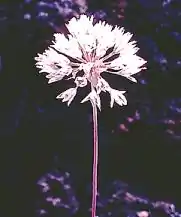 The inflorescence holds 20 to 60 small flowers, each under a centimeter long with pink-veined white tepals with curling tips.[4][6][7]