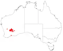 Subspecies eriochlamys grows in mallee woodland on stony slopes between Comet Vale and Kalgoorlie in the Coolgardie and Murchison bioregions[11][14] and subsp. grossa grows around granite outcrops, mainly near Norseman in the Coolgardie and Nullarbor bioregions of Western Australia.[13][15]