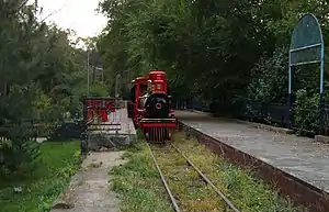 The Alma-Ata Children's Railway (Russian: Алма-Атинская детская железная дорога, romanized: Alma-Atinskaya detskaya zheleznaya doroga) is a narrow-gauge children's railway in Almaty, Kazakhstan, which was called Alma-Ata from 1921 to 1993. The main route of the track had a gauge of 750 mm (2 ft 5+12 in) and a length of 1.24 km (0.77 mi). It was inaugurated on 13 September 1952 as one of many pioneer railways in the Soviet Union and on 20 July 1997 it was temporarily decommissioned.[1] Since 2006 it has operated as a ridable miniature railway for entertainment rather than an educational purpose.[2]