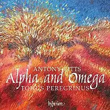 Alpha and Omega is Tonus Peregrinus's second album of unaccompanied choral works by Antony Pitts released on Hyperion Records. The album contains the coda from the oratorio Jerusalem-Yerushalayim[2] and the complete cycle of The I AM Sayings of Jesus. Tracks from the album have been broadcast on BBC Radio 3[3] and Classic FM in the UK.