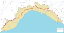 The Alta Via dei Monti Liguri (AV, literally "High Route of the Ligurian Mountains") is a long-distance waymarked hiking trail in the Italian region of Liguria. In about 440 kilometres (270 mi) and 44 day hikes,[1] it runs through the arc formed by Ligurian Alps and Ligurian Apennines from Ventimiglia (IM, in the westernmost part of the region) to Ceparana (Bolano, SP, on its east side).